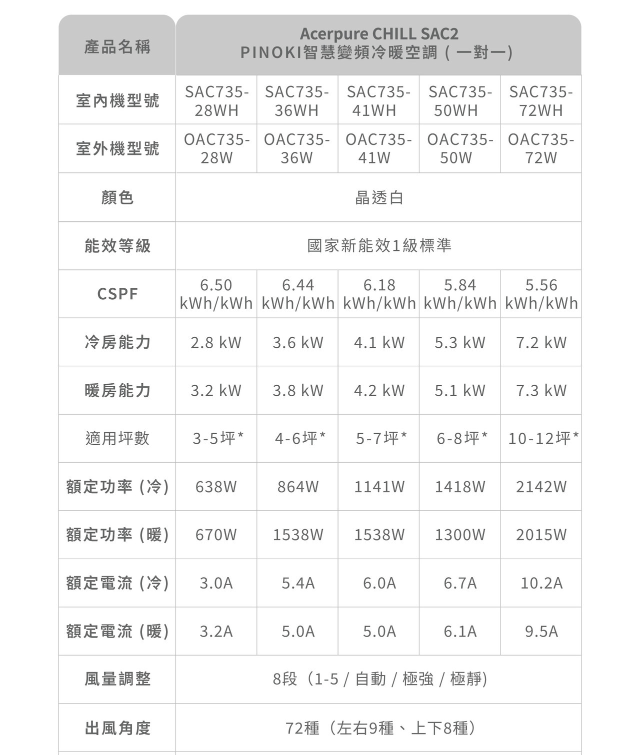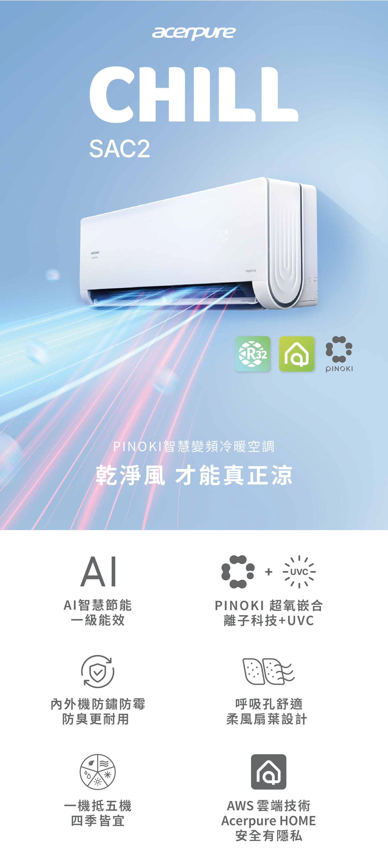CHILL SAC2 PINOKI 智慧變頻冷暖空調 SAC735-41WH/OAC725-41W