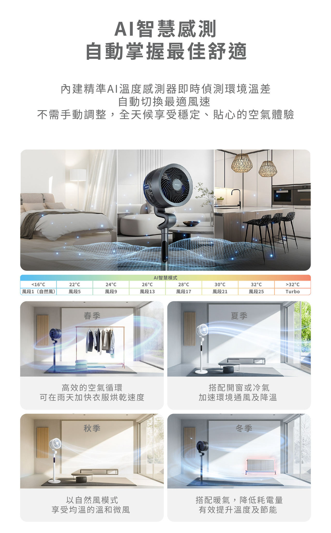 ●AI智慧感測 自動調節風量